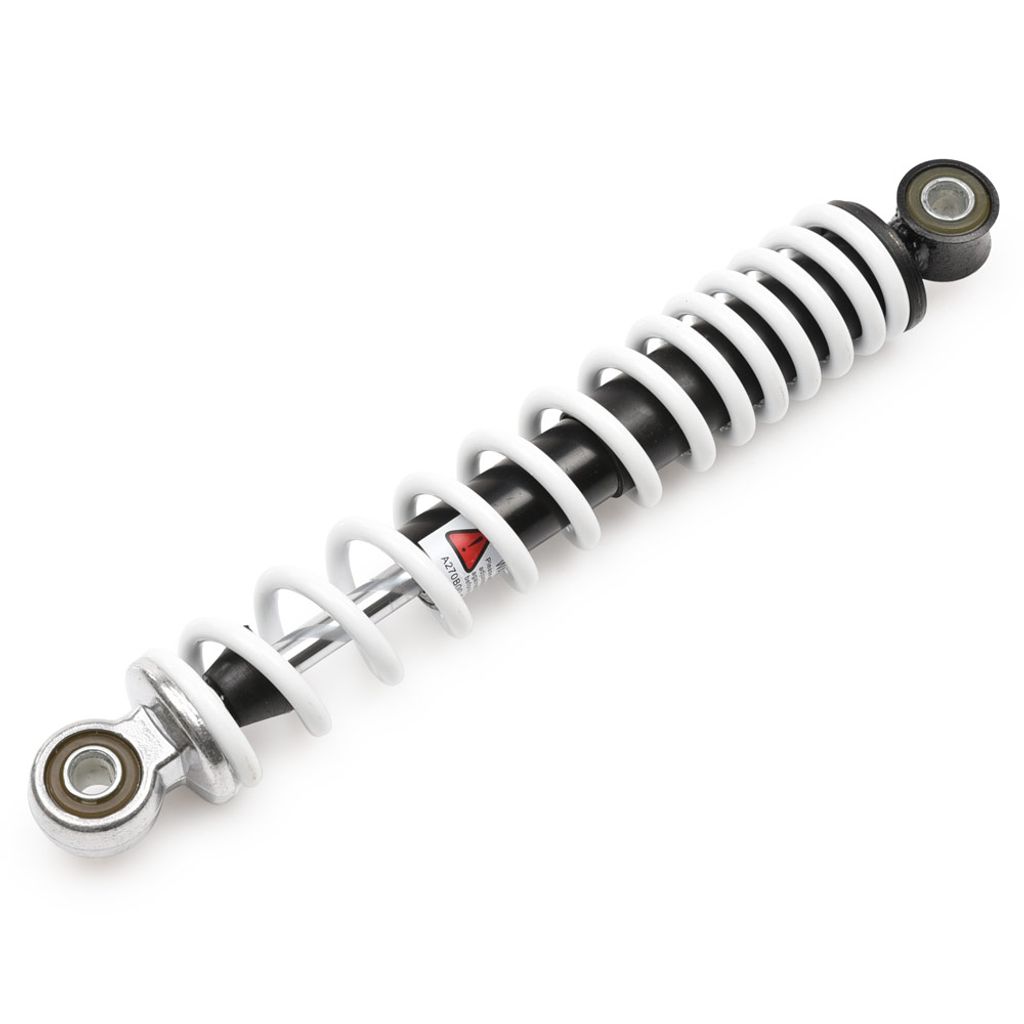 Stötdämpare utav bra kvalitet, fin returdämpning. Stötdämparen lämpar sig till mindre fyrhjulingar 70cc,90cc (till framvagnen) samt andra minimotorcyklar där man använder två stötdämpare till baksvingen (en på varje sida). I övrigt en universal stötdämpare som kan vara lämplig till olika hemmabyggen samt lådbil, moped, go-kart, crosskart mm.