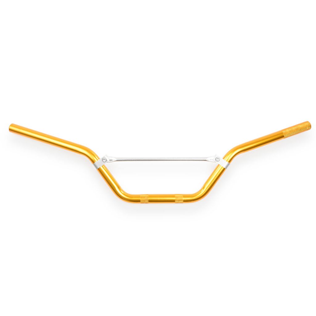 Kraftigt och lätt styre i guld eloxerad aluminium. För standard 22mm styrfäste. Ett prisvärt styre passande de flesta cross / Fiddy samt även fyrhjuling.