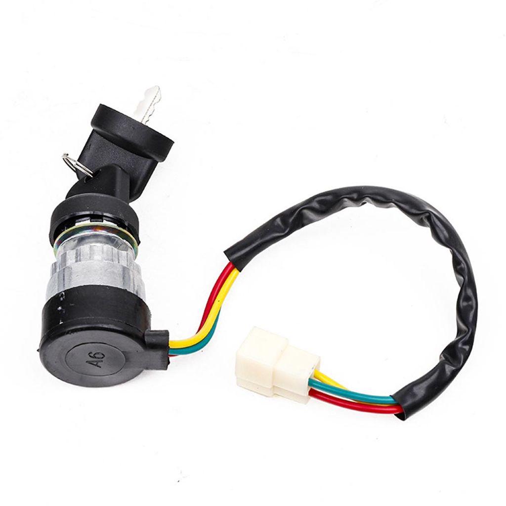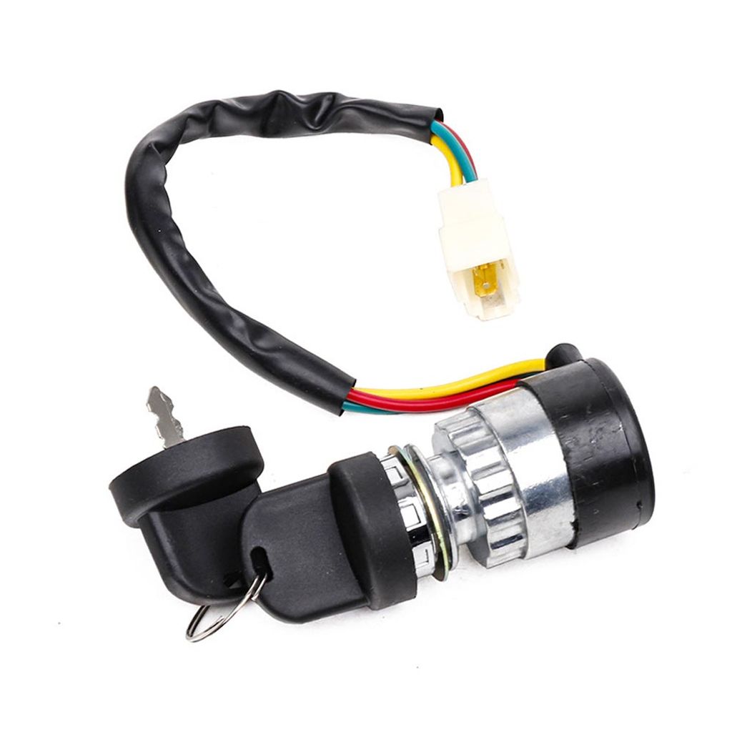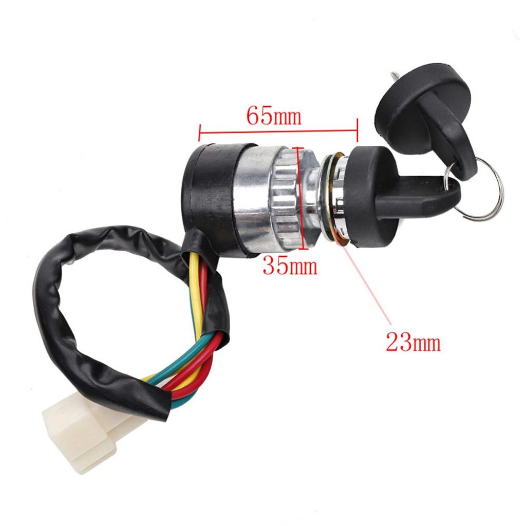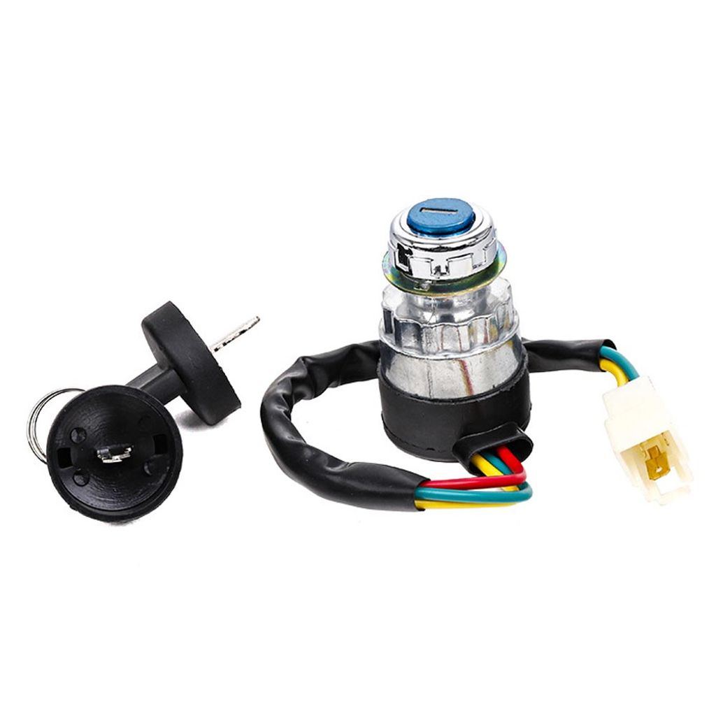 Universal tändningslås som kan användas till olika modeller och applikationer. Tändningslåset har tre kablar och tre lägen. I första läget är låset av och nyckeln kan tas ut. Andra läget, ett steg medurs. Tredje läget: ett steg till medurs. Kabellängd: 230mm