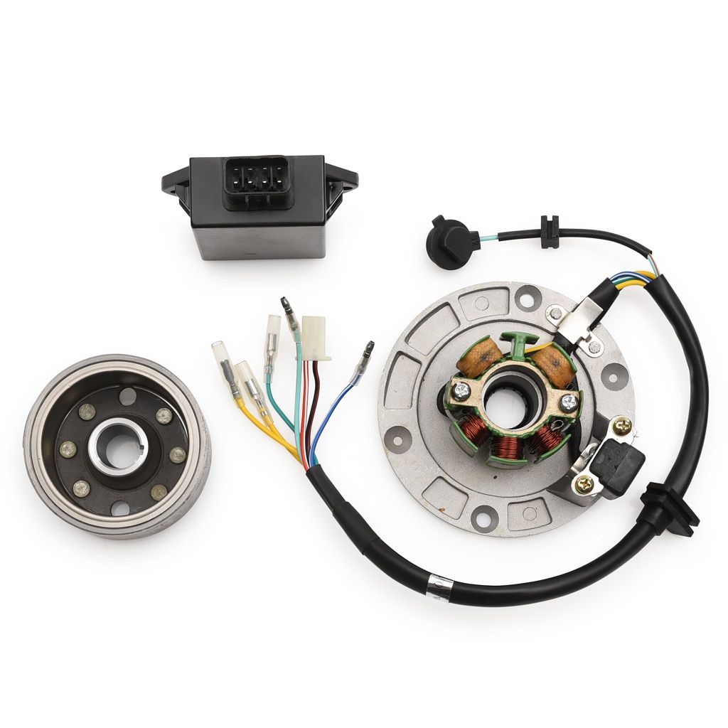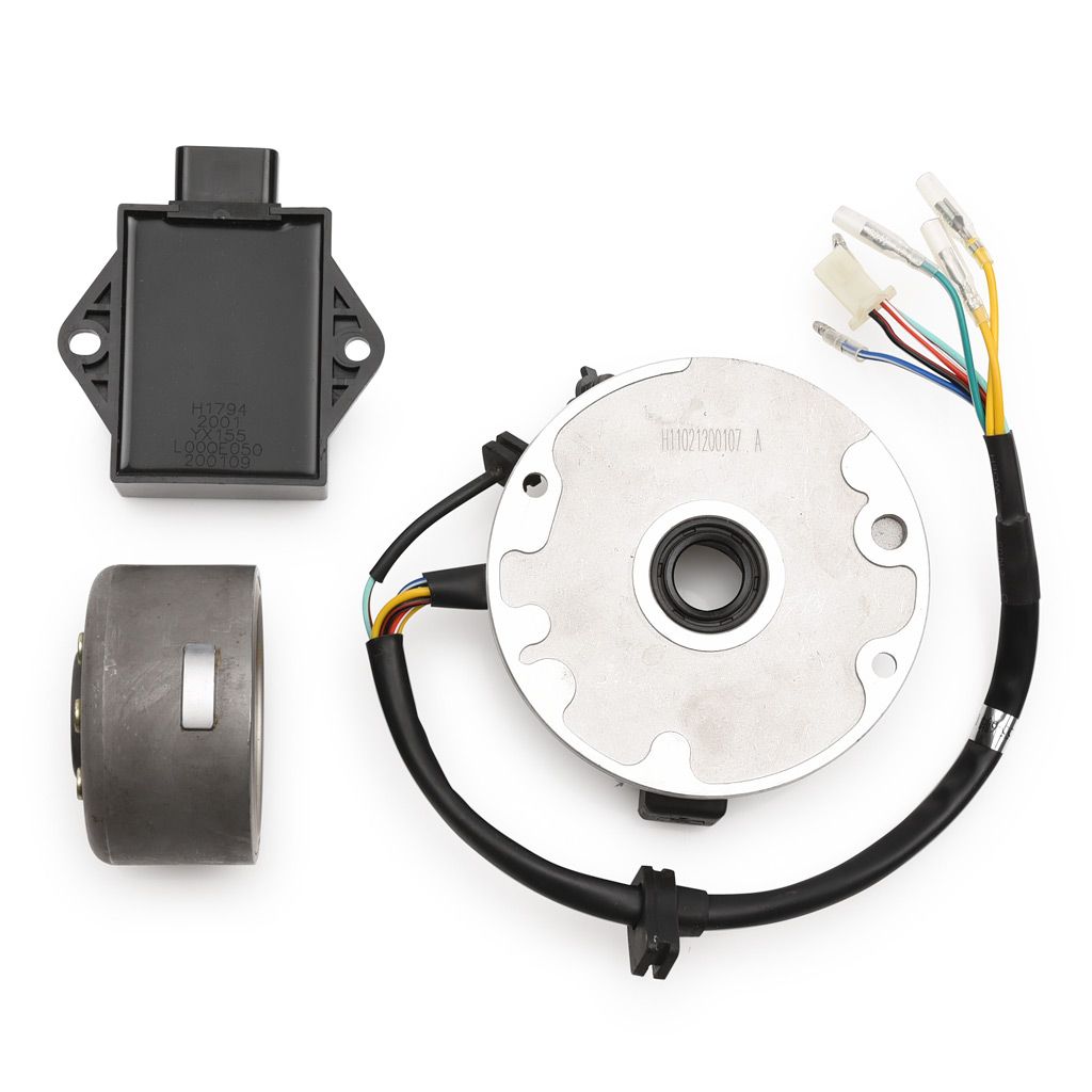 Racing rotorkit även kallad Performance stator är en tändplatta inkl. lättat svänghjul vilket ger snabbare gasrespons och högre varvtal. Levereras med tillhörande 8 pin cdi box. Kabelstam ingår ej (Kabelstam Lifan, 8 pin).