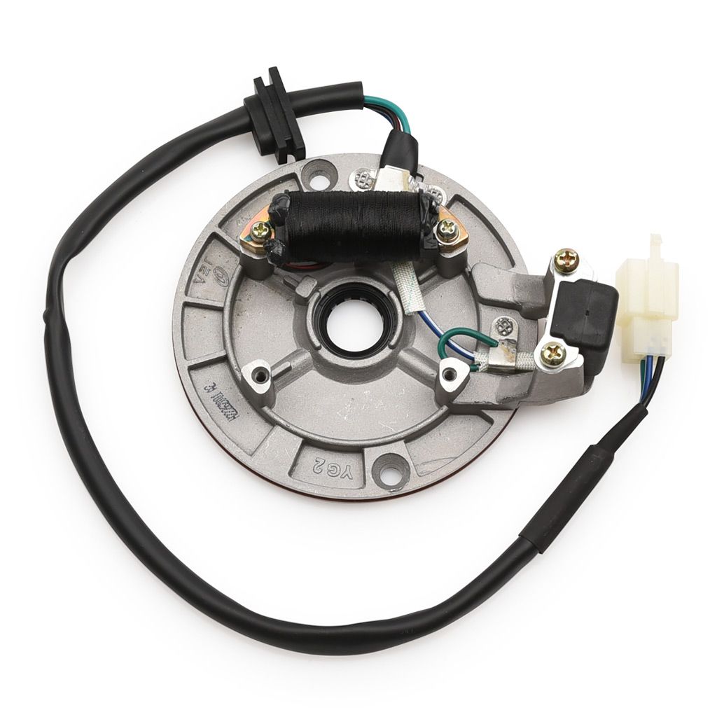 Vanligt förekommande tändplatta för motorer med liggande cylinder och kickstart utan elstart som exempelvis Loncin, Lifan, YX, Ducar och Zongshen med flera. 50cc, 70cc, 90cc, 125cc men kan även passa vissa 140cc och 150cc motorer med liggande cylinder.