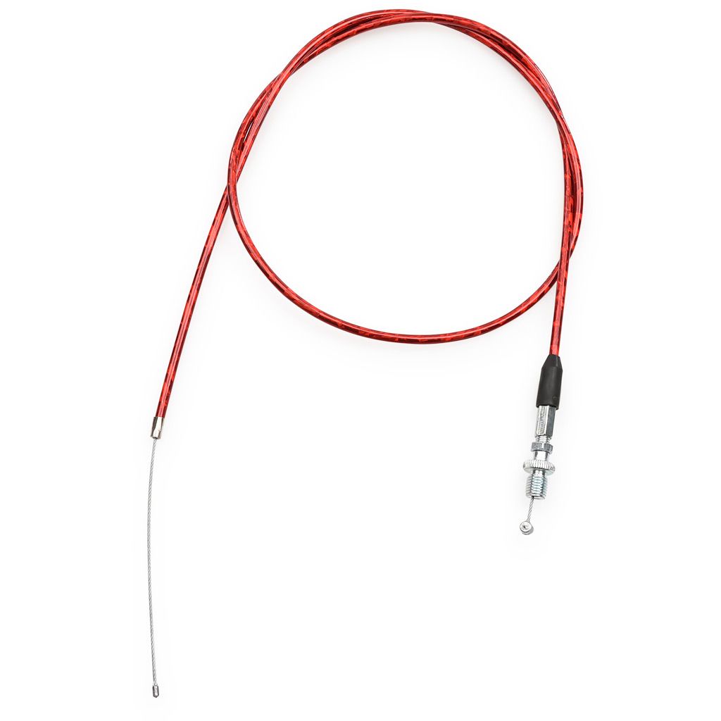Universal gasvajer utav hög kvalitet. Röd metallic finish. Används till cross / Dirtbike med standard förgasare. Vajern går att justera / spänna ca 12mm (med både justerarna, 6+6mm). Standard M10 gänga som skruvas in i gashållaren.