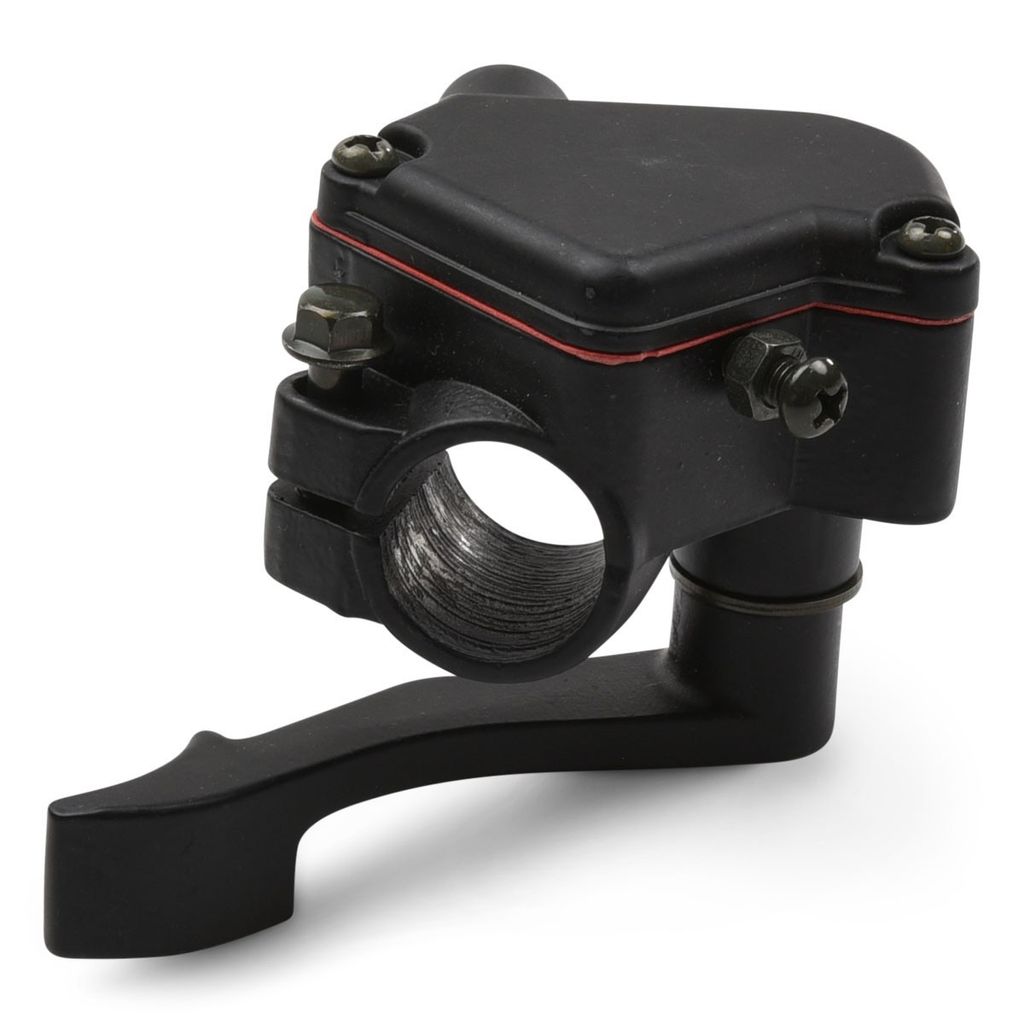 Tumgasreglage i metall med stoppskruv för reglering av max gas / utslag, så kallad ställbar gas. Passar standard 22mm styre. Kan monteras på de flesta maskiner och förgasare. Gasvajern går att spänna / justera för att längden ska passa olika förgasare.