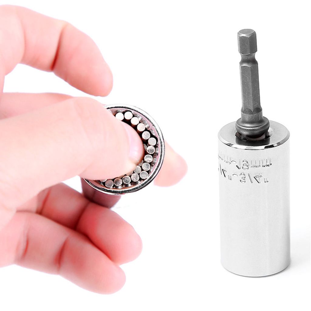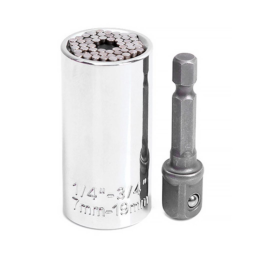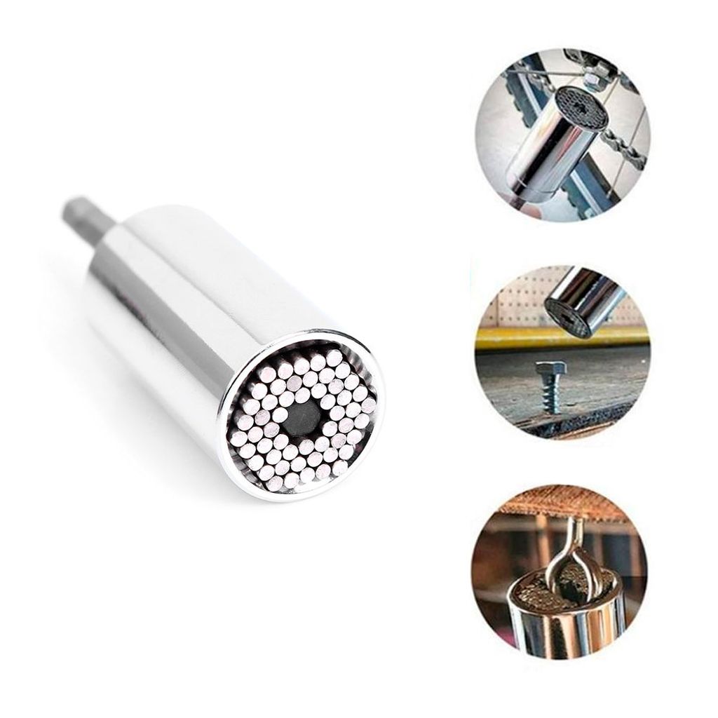 Förenkla dina reparations- och monteringsprojekt med denna smarta och mångsidiga universalhylsa. Perfekt för att hantera muttrar och skruvar i varierande storlekar och former, från 7 mm till 19 mm. Hylsan är utrustad med fjäderbelastade stålpinnar som anpassar sig till formen på föremålet för en perfekt passform och enkel användning.