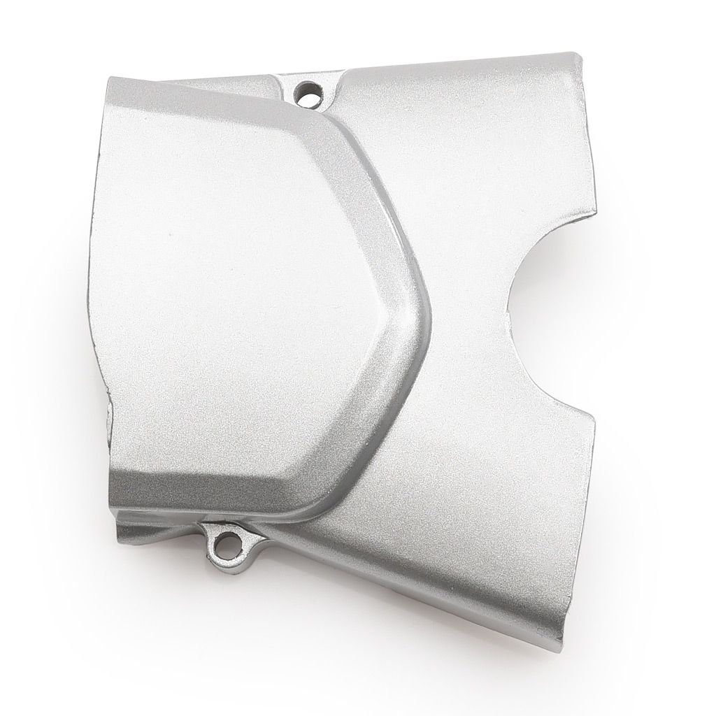 Vänster motorkåpa, bakre delen som täcker framdrevet. Tillverkad i aluminium med silver metallic finish. Passar 4-takts motorer med liggande cylinder och elstart 50cc, 70cc, 90cc, 110cc och vissa 125cc. Kompatibel med motortillverkare som Loncin, Lifan YX med flera.