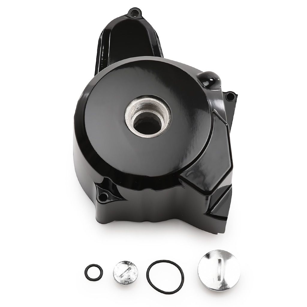 Vänster motorkåpa / svänghjulskåpa ATV / Dirtbike i svart finish. Passar 4-takts motorer med liggande cylinder och elstart 50cc, 70cc, 90cc, 110cc samt 125cc. Kompatibel med motortillverkare som Loncin, Lifan YX med flera. Inklusive lock med O-ringar.