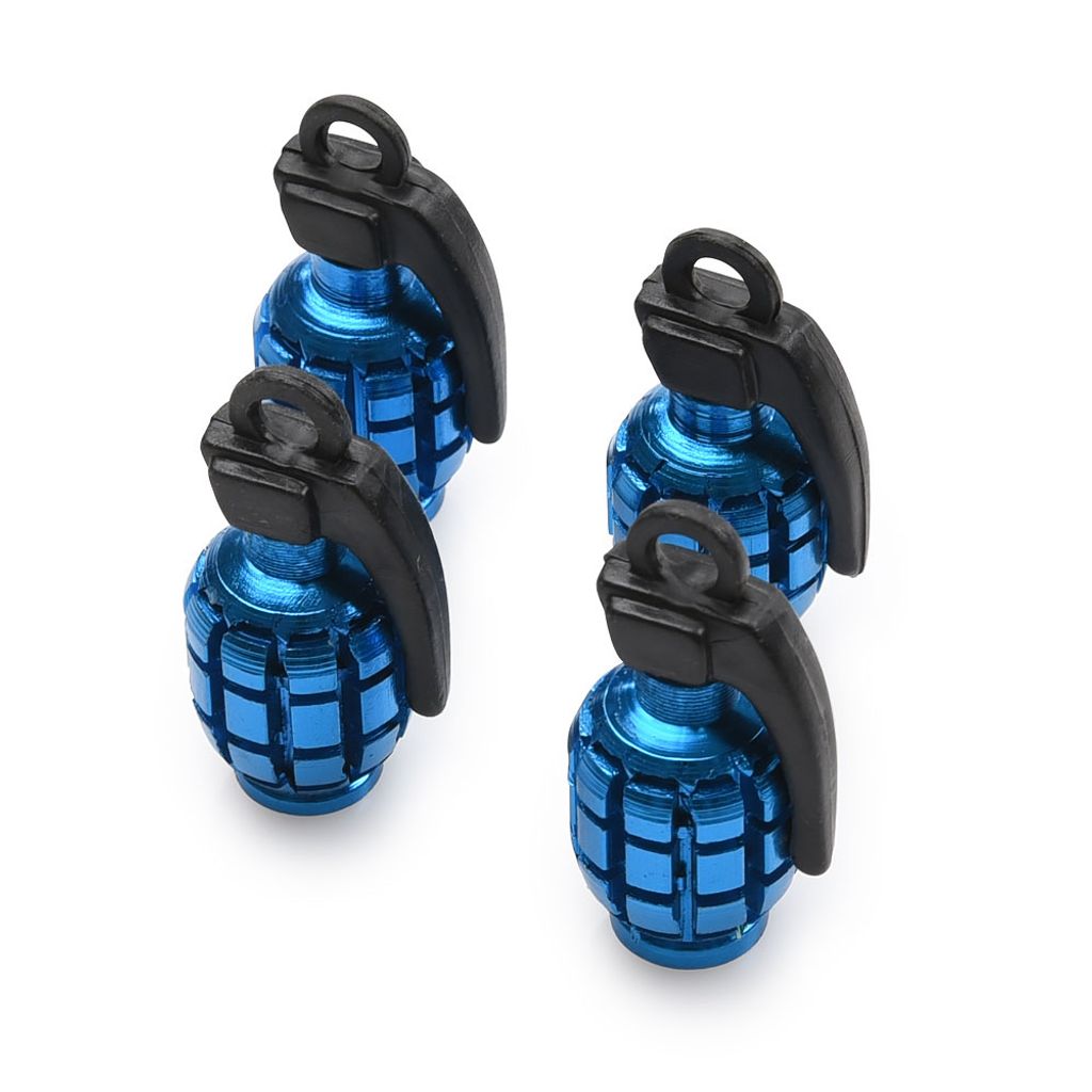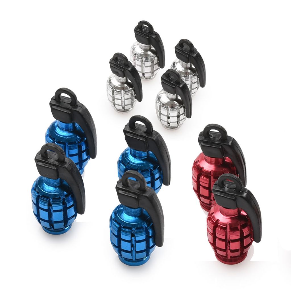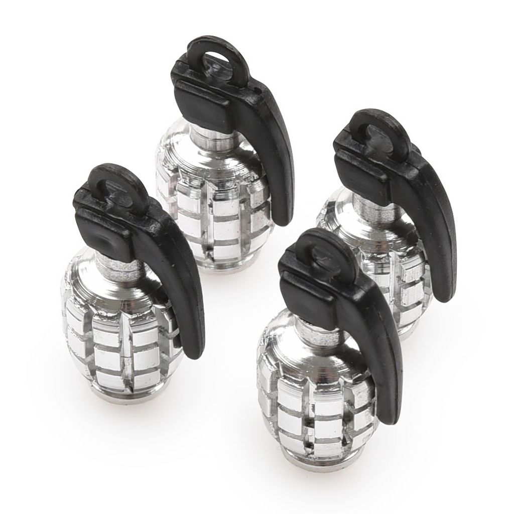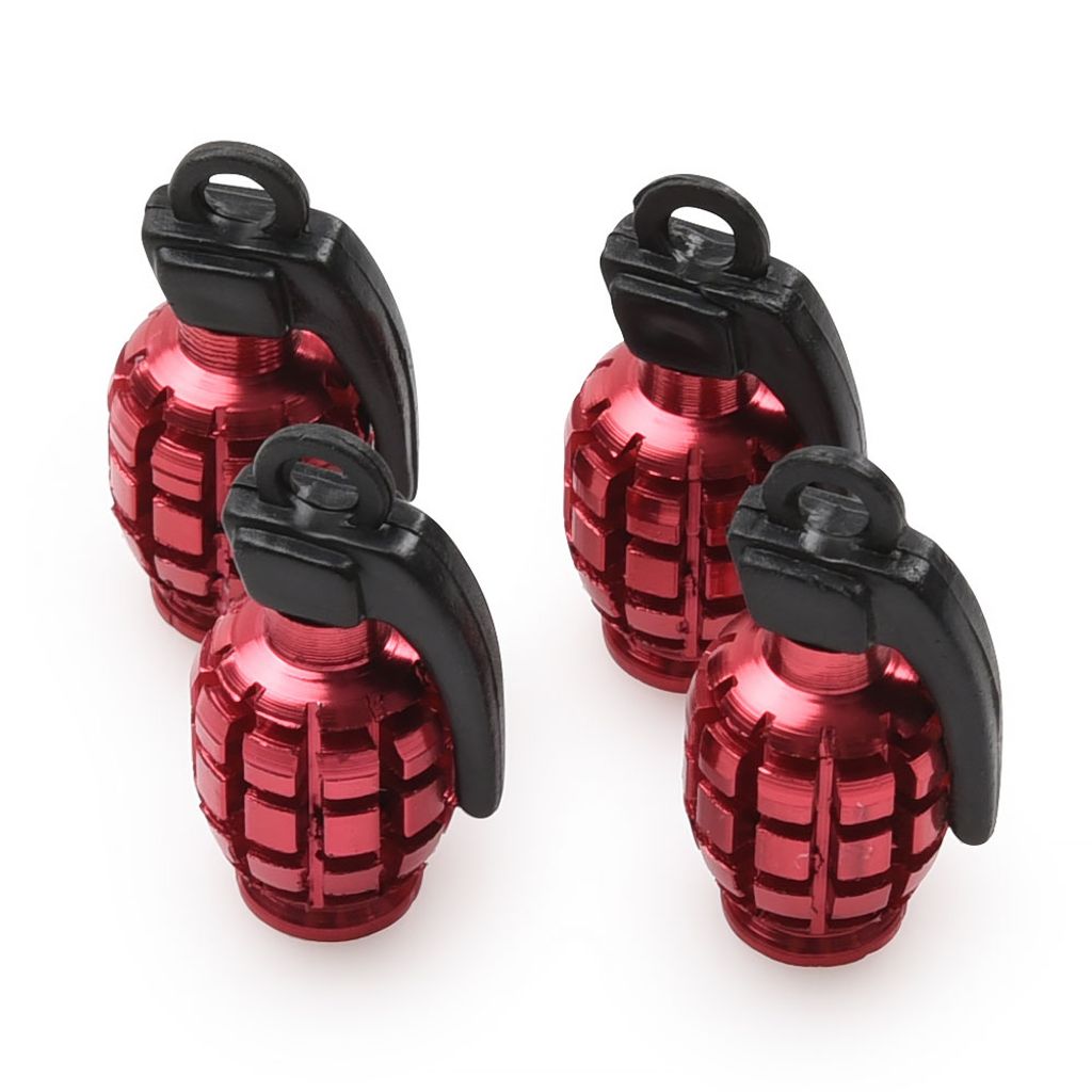 Rejäla ventilhattar i aluminium. Häftig design som liknar en handgranat. Passande de flesta hjul och slangar med standard bilventil. Levereras 4-pack.