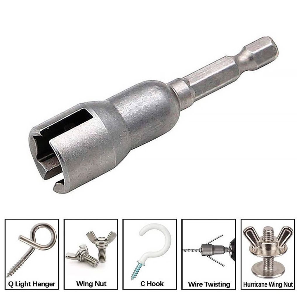Perfekt för användning vid upphängning av lampor, trådvridning, montering av möbler eller andra projekt där vingmuttrar används. Den är tillverkad för att passa standard snabbchuck och är enkel att fästa på de flesta skruvdragare